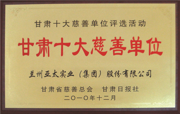 多年來(lái),亞太集團(tuán)在做好自身品牌建設(shè)的同時(shí),始終致力于做一名優(yōu)秀的企業(yè)公民,集聚人性向善的力量,努力讓一個(gè)城市的情緒變得越來(lái)越溫柔。累計(jì)解決下崗職工就業(yè)6000多人;先后捐建多所村級(jí)“幸福老人院”;援建多個(gè)聯(lián)村聯(lián)戶及新農(nóng)村民生項(xiàng)目;連續(xù)舉辦七屆“亞太學(xué)子”活動(dòng)……截至目前,亞太集團(tuán)已向?yàn)?zāi)區(qū)、困難群體、鄉(xiāng)鎮(zhèn)學(xué)校、慈善機(jī)構(gòu)累計(jì)捐款捐物近1.2億元,先后榮獲全國(guó)工商聯(lián)評(píng)選的“抗震救災(zāi)先進(jìn)單位”,“甘肅10大慈善企業(yè)”,其中亞太集團(tuán)朱全祖總裁被評(píng)為“甘肅10大慈善人物”。