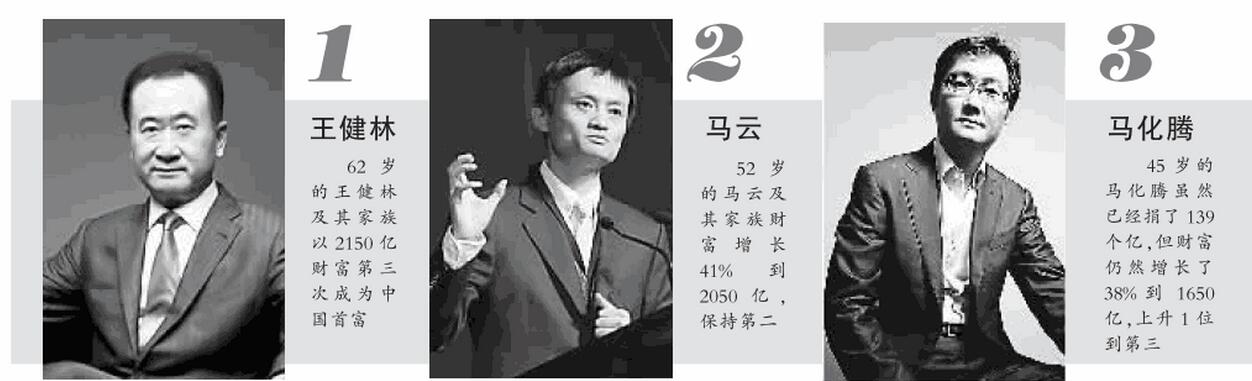 10月13日,胡潤(rùn)研究院發(fā)布《2016碧桂園森林城市· 胡潤(rùn)百富榜》,這是胡潤(rùn)研究院自1999年以來連續(xù)第18次發(fā)布“胡潤(rùn)百富榜”。今年百富榜上榜門檻已連續(xù)四年保持20億元。王健林以2150億財(cái)富第三次成為中國(guó)首富,馬云則以2050億的財(cái)富位列第二?! ?/FONT>