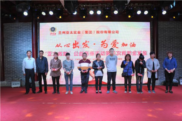 在捐款儀式上,“亞太救助”公益慈善活動(dòng)第五次救助對(duì)象31人每人發(fā)放1——2萬元救助金,第五次亞太救助活動(dòng)共計(jì)發(fā)放救助金35萬元。為了極大緩解重病患者因病致貧、因病返貧的實(shí)際難題,為患者及時(shí)送去救命錢,為孤寡老人等特殊困難群體送去溫暖。由蘭州亞太集團(tuán)聯(lián)合蘭州晚報(bào)主辦,由甘肅亞太慈善基金會(huì)積極支持的“亞太救助”公益慈善活動(dòng),第一次活動(dòng)從6月23日正式開始, 并連續(xù)舉行了5次,累計(jì)發(fā)放救助金額177萬元,合計(jì)救助人數(shù)127人。蘭州亞太集團(tuán)聯(lián)合蘭州晚報(bào),一年內(nèi)計(jì)劃投入500萬元專項(xiàng)基金,每月進(jìn)行一次,將公開征集蘭州城區(qū)的孤寡老人等特殊困難群體和罹患重病且態(tài)度積極向上的患者,采訪、報(bào)道,審核通過后,活動(dòng)投入的500萬元專項(xiàng)基金將為200位左右的重病患者捐贈(zèng)0.5到5萬元不等的救助金。在活動(dòng)現(xiàn)場(chǎng)接受了“亞太救助”慈善公益活動(dòng)第五次救助金的代表,分別向亞太集團(tuán)和蘭州晚報(bào)敬獻(xiàn)了錦旗和感謝信。